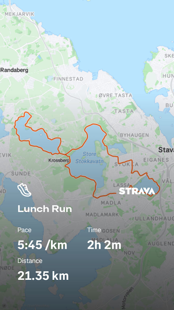 Feeling a bit optimistic I decided to join the 2 hour bracket, instead of the 2 hour, 10 minutes one I originally signed up for. I managed to complete it in 2.02.43. There were a lot of runners and the group spread out so I eventually lost sight of the rabbits keeping the 5 minutes, 41 seconds, pr. kilometer pace. Not sure I would have been able to keep up anyways as I started to feel tired at around 16km. I am however very pleased with completing, beating my previous record with almost 10 minutes, and how quickly I recovered after. My form must have gotten better. Also other than slight sore feet I feel totally fine which is a huge improvement on my previous attempt.