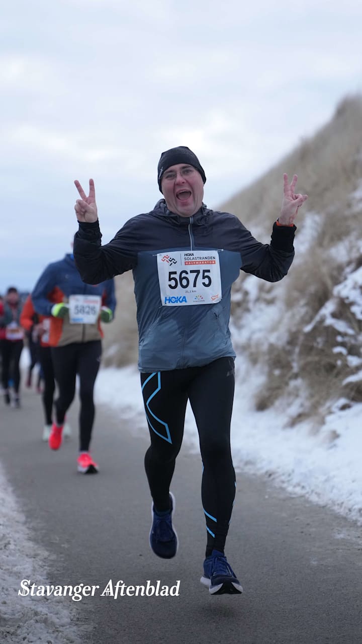 Stavanger Aftenblad's picture of me striking a pose. They had a sign 50m up front so I had some time to prepare.